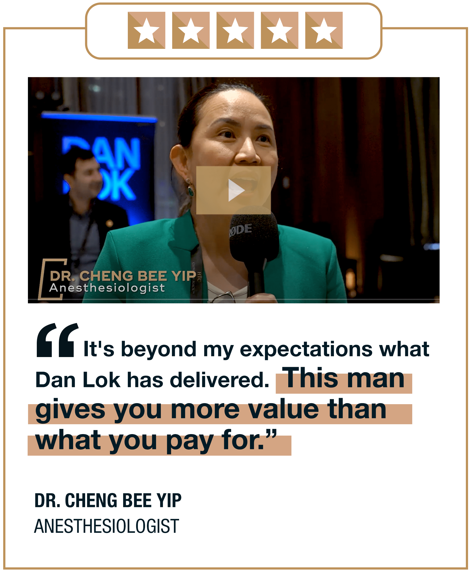 Dan Lok is a globally respected entrepreneur mentor, and one of the world’s most watched, followed, and quoted social media influencers with over 9.18 million followers across his brands, including 3 million fans on Facebook, 4 million YouTube subscribers, and 2 million Instagram fans.